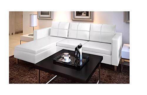 L Shape Sofa Set:- Sectional Synthetic Leatherette Sofa Set (White)