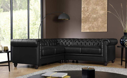 L Shape Sofa Set:- Chesterfield Corner Leatherette Sofa Set (Black)