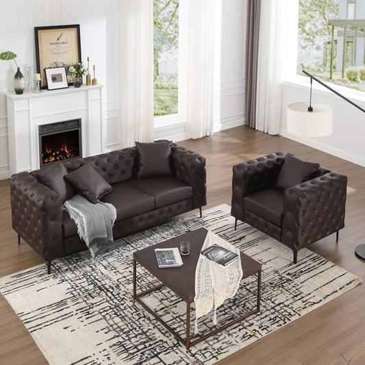 7 Seater Sofa Set: 2-Piece Tufted Faux Leather Sofa