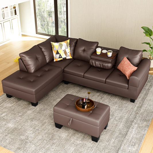 7 Seater Sofa Set: 3-Piece PU Leather Sectional with Chaise
