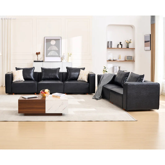 7 Seater Sofa Set: Configurable Vegan Leather Living Room Furniture for Modern Homes