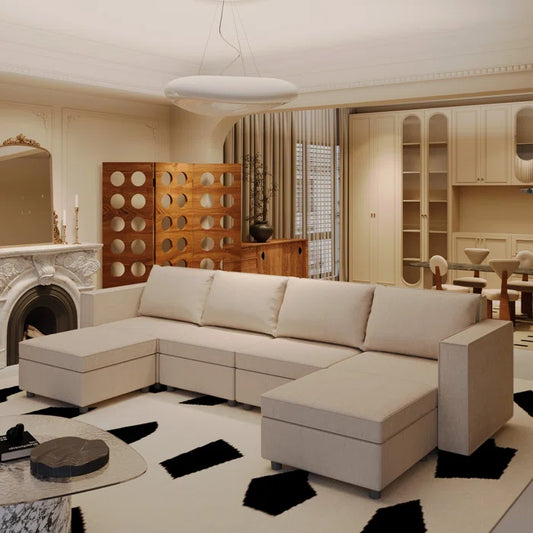 7 Seater Sofa Set: U-Shaped Modular Reversible Sectional Couch with Storage Seat