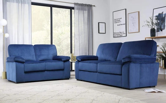 5 Seater Sofa Set:- Blue Velvet Fabric Sofa Set