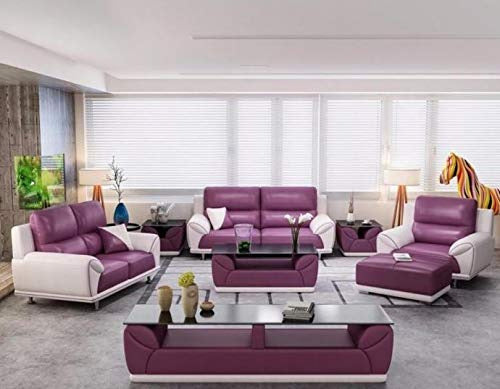 6 Seater sofa Set:- Spanish Leatherette 6 Seater Sofa Set with Table (White and Red)