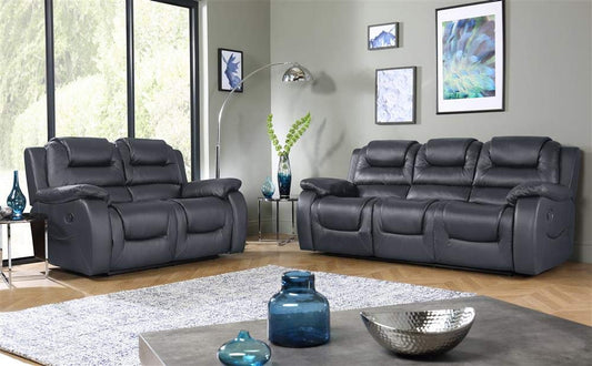 5 Seater Sofa Set:- (3+2) Recliner Leatherette Sofa Set (Grey)