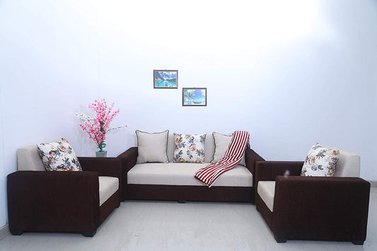 5 Seater Sofa Set:- Fine Bone 3+1+1 Fabric Sofa Set (Brown & Beige)
