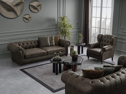 6 Seater Sofa Set:- Nemila Leatherette Sofa Set (Dark Brown)