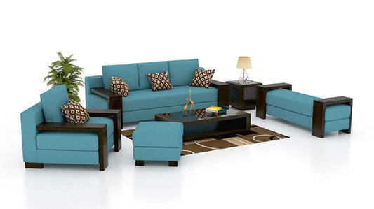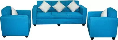 5 Seater Sofa Set:- (3+1+1) Turquoise Blue Fabric Sofa Set