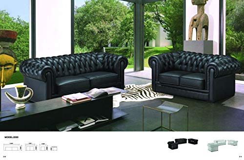 6 Seater Sofa Set:- Chesterfield (3+2+1) Hardwood Leatherette Sofa Set (Black)