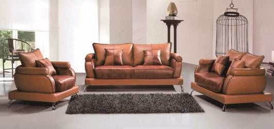 6 Seater Sofa Set:- Piacenza Italian Leatherette Sofa Set (Brown)
