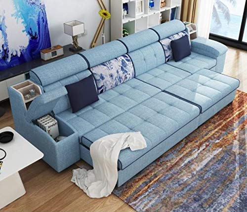 6 Seater Sofa Set:- Linen Sectional Fabric Sofa Set Standard Size (Sky Blue)