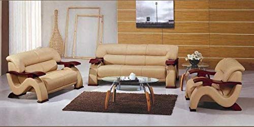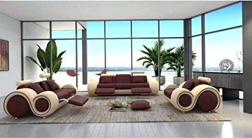 6 Seater Sofa Set:- Luxury Recliner Leatherette Sofa Set, Standard, (Beige and Brown)
