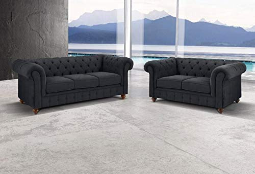 5 Seater Sofa Set:- Charcoal Grey (2+3) Fabric Sofa Set