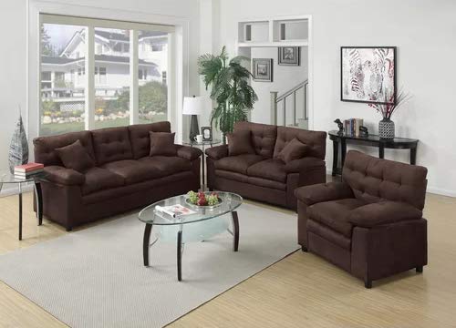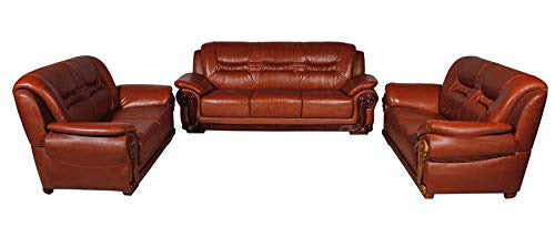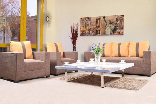 6 Seater Sofa Set:- 3 Piece Living Room Fabric Sofa Set (Brown)