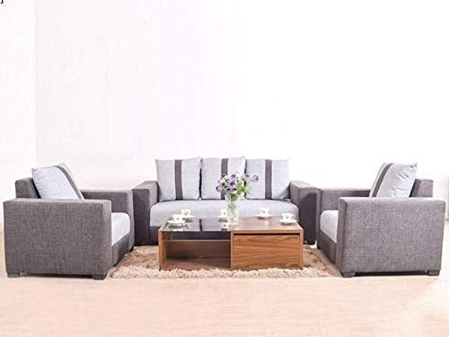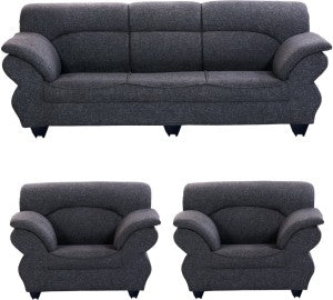 3 Seater Sofa Set:- Polyurethane Cushioned Fabric Sofa Set (Grey)