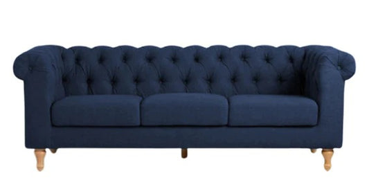 3 Seater Sofa:- Riya Chasterfield Fabric Sofa Set (Blue)