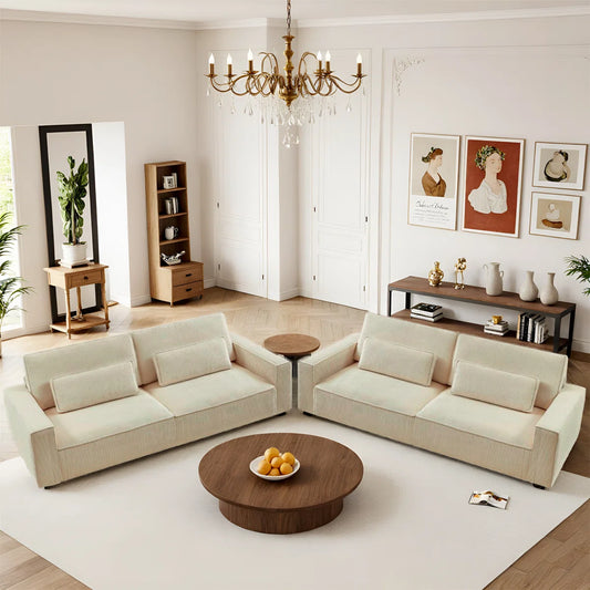 7 Seater Sofa Set: 2-Piece 105.5”L Corduroy Fabric Sofa Set for Modern Living Spaces
