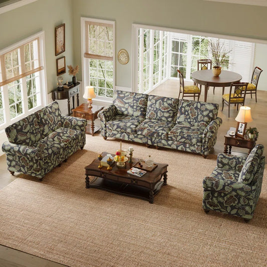 7 Seater Sofa Set: 6-Seats Sectional Sofa Flower Pattern for Living Room