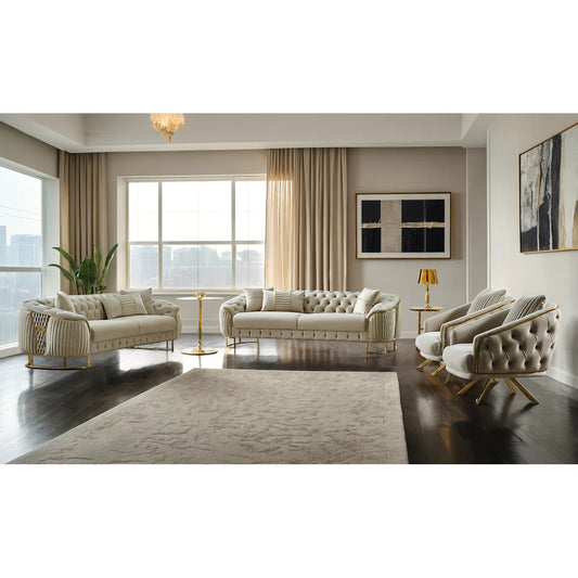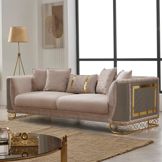 7 Seater Sofa Set: Luxury Living Room 3-Piece Velvet Sofa Set