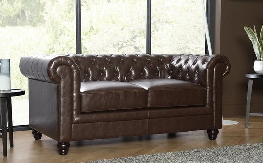 Chesterfield Sofa Set: Chestnut Leatherette 2 Seater Sofa Set