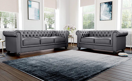 Chesterfield Sofa Set: Grey Leatherette 3 Seater Sofa Set