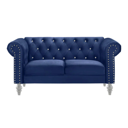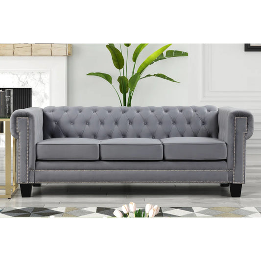Luxury Sofa Sets: Glam Velvet Sofa Set with Crystal Tufting & Silver Nailhead – Trevin Collection