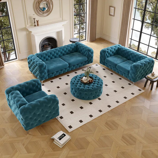 Luxury Sofa Sets: Velvet 3+2+1 Seater Living Room Set with Tufted Design