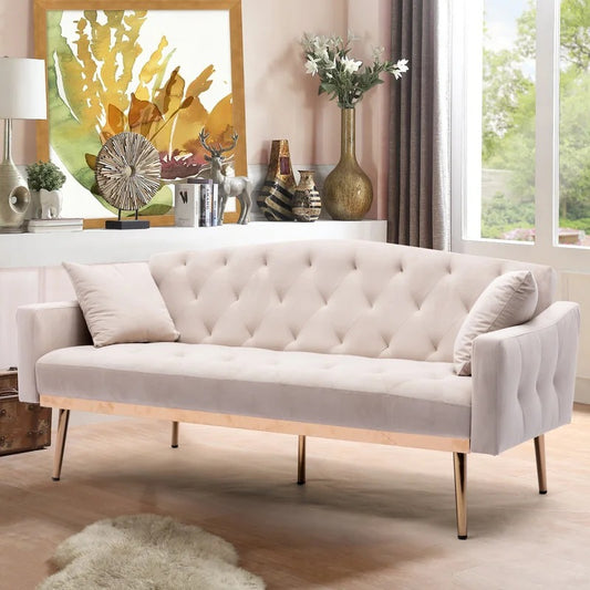 Futon: 70'' Velvet Square Arm Sleeper Sofa