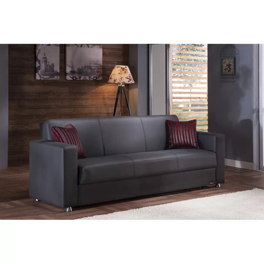 Futon: 88'' Wide Faux Leatherette Convertible Sofa