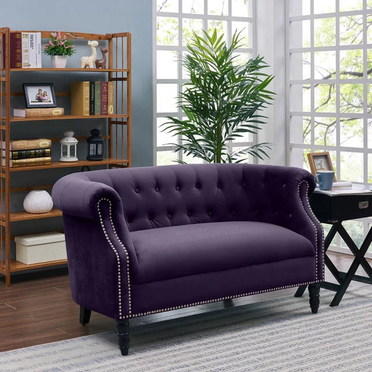Loveseat: 49'' Rolled Arm Chesterfield Loveseat Sofa