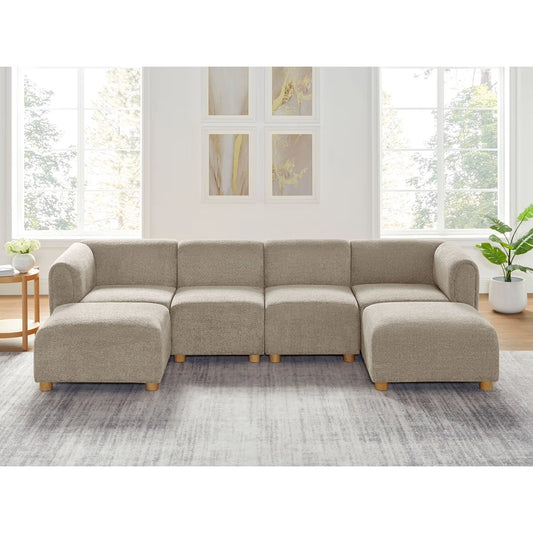 7 Seater Sofa Set: 6-Piece Upholstered Sectional with Ottomans for Spacious Living Rooms