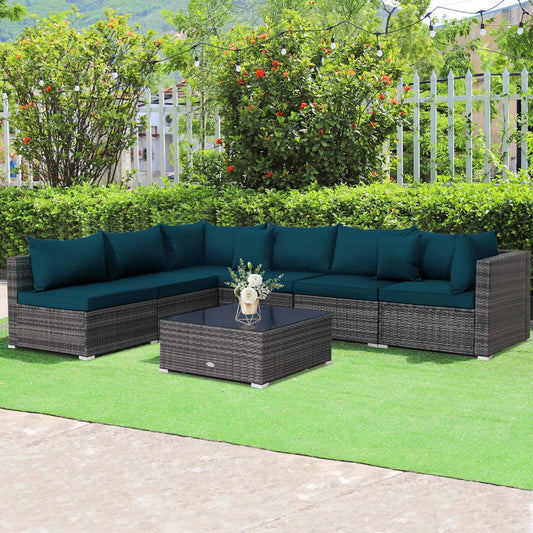7 Seater Sofa Set: 7-Piece Patio Furniture Set with Cushions Set