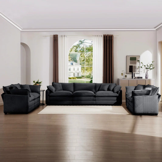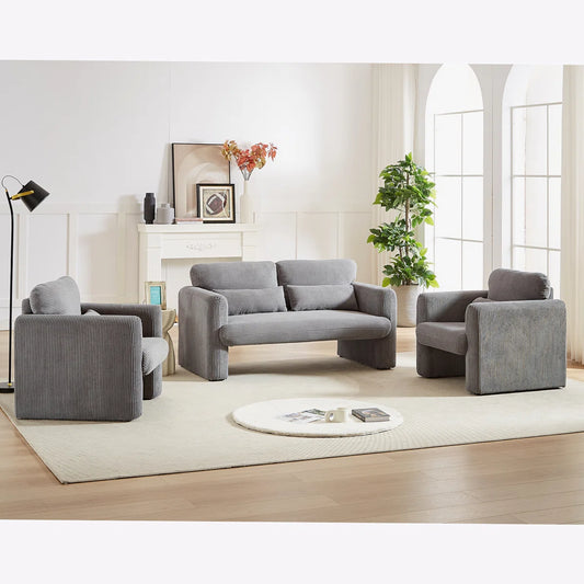 7 Seater Sofa Set: Corduroy Fabric Sofa with Two Single Sofas for Stylish Living Rooms