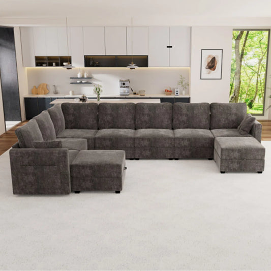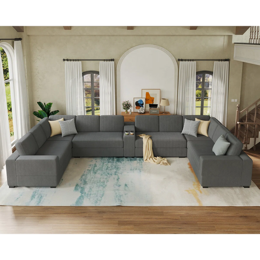 7 Seater Sofa Set: Convertible U-Shaped Sectional Couch with Double Chaises