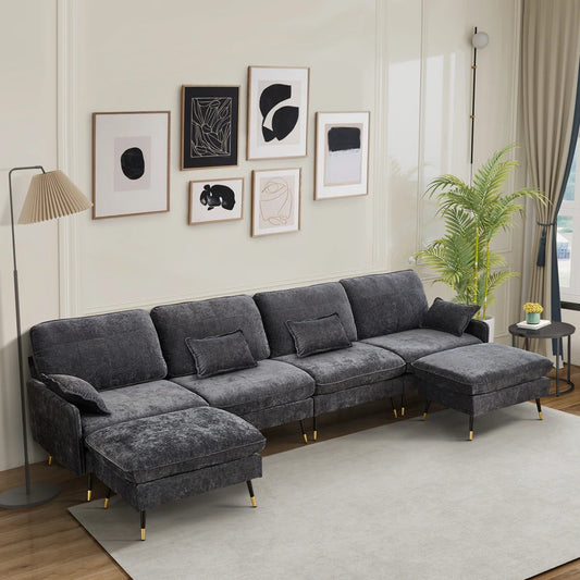 7 Seater Sofa Set: 4-Seat Modern Upholstered Sectional Couch for Living Room