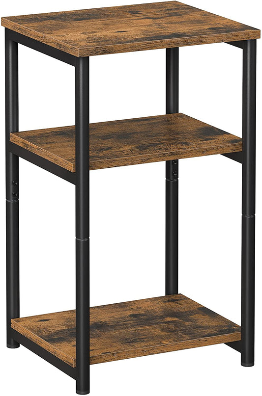 Side Tables: Rustic Brown and Black End Table with Storage Shelves