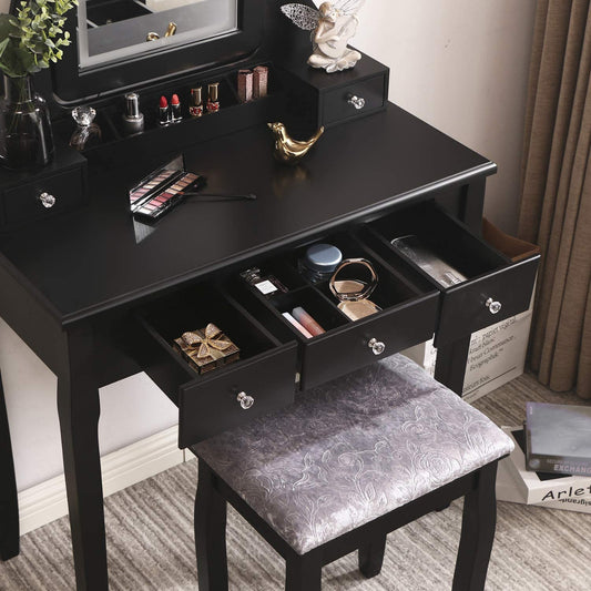 Dressing Table: Makeup Vanity Makeup Table 5 Drawers 2 Dividers Removable Organizers (Black)