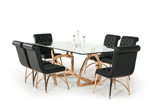 Premium Dining Table: Modern Glass & Rosegold Dining Table