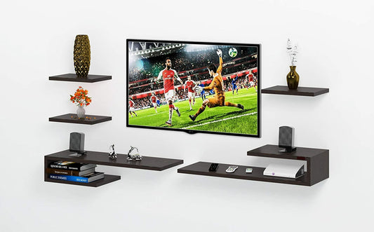 Wall Mount TV Unit: 6 Wall Shelf Display Rack for Living Room