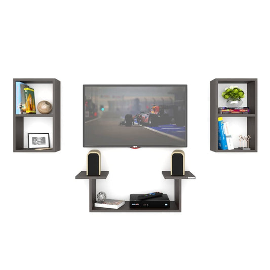 Wall Mount TV Unit: TV Wall Mount With 3 Wall Shelves Display Rack