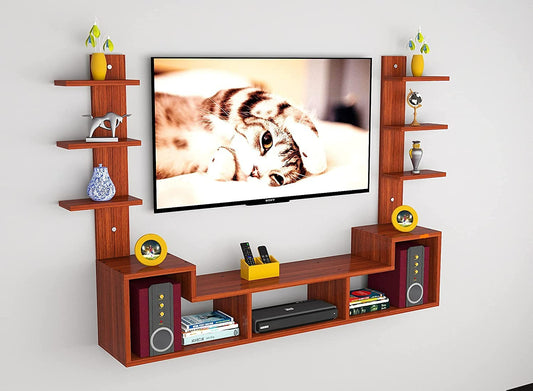 Wall Mount TV Unit: Wall Mount TV Stand And 6 Wall Shelf Wooden Showcase (Ideal for up to 43"screen)