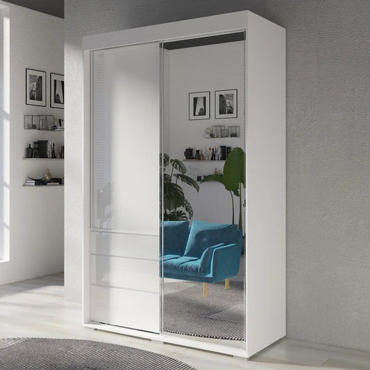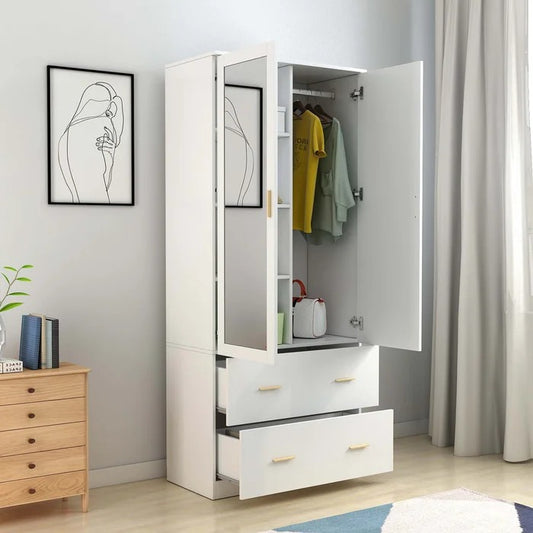 Almirah: White Soft Close 2 Doors Wardrobe With Mirror