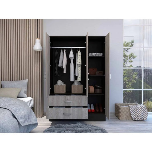 This wardrobe design consists of a garment rod so that you can well hold and arrange garments like dresses, slacks and button-up shirts.