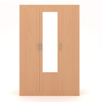 Wardrobe : 3 Door Wardrobe With Mirror ( In Sapeli Finish)