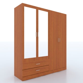 Wardrobe : 4 Door Wardrobe With Mirror (In Sapeli Finish)