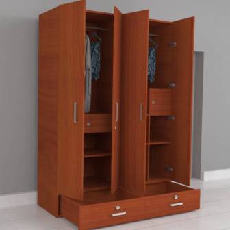 Wardrobe : 4 Door Wardrobe (In Teak Finish)