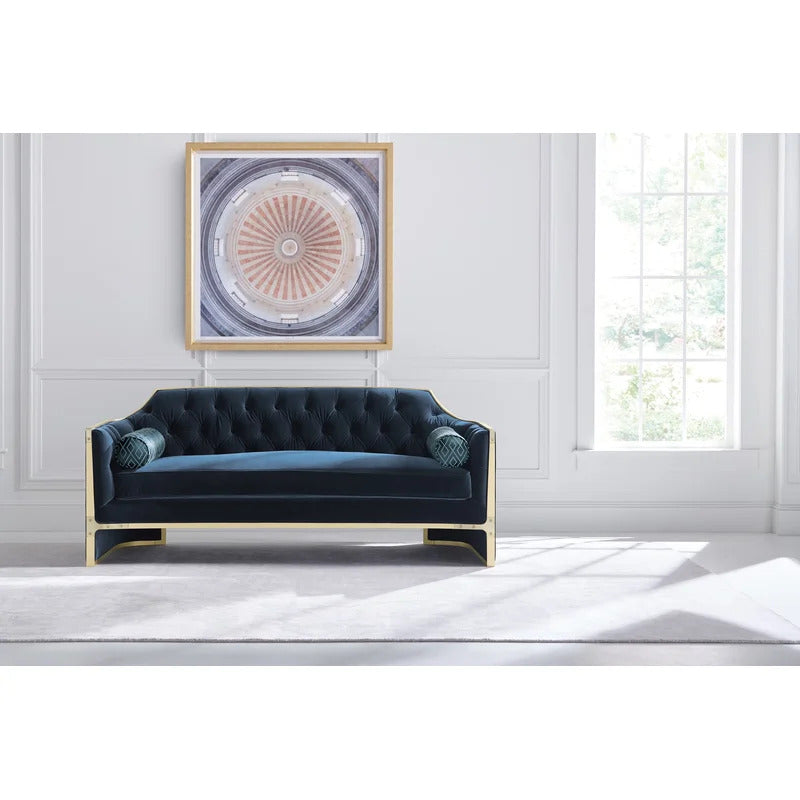 This velvet sofa combines modern design with comfort. Its square arms and plush fabric offer both a sleek look and a luxurious seating experience. Perfect for any contemporary living space.