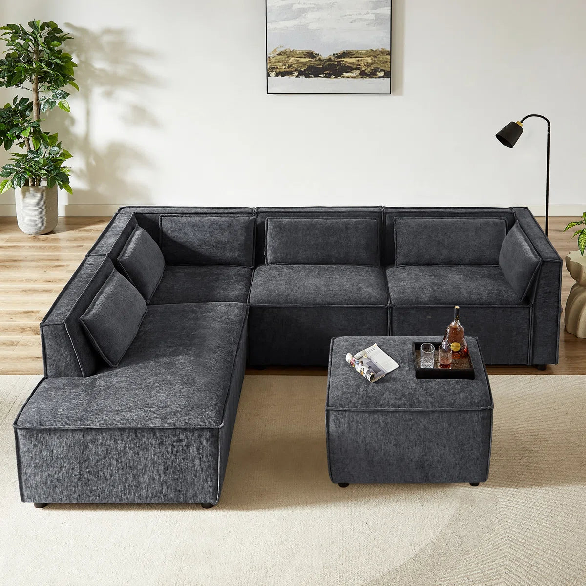 This functional seven-seater sofa set, which has a 100" wide linen modular design with an exchangeable sofa bed and matching ottoman, will improve the comfort of your home. This combination set is perfect for modern living rooms because it offers ability with its space-saving setup and lots of seating for up to seven people. The set, which is upholstered in soft, comfortable linen, combines comfortable cushions and deep seating with useful functionality. The modules can be easily changed to fit the layout of your room or used as a guest sofa bed. The ottoman that comes with it improves comfort and can be used as a work of art exterior or extra storage.