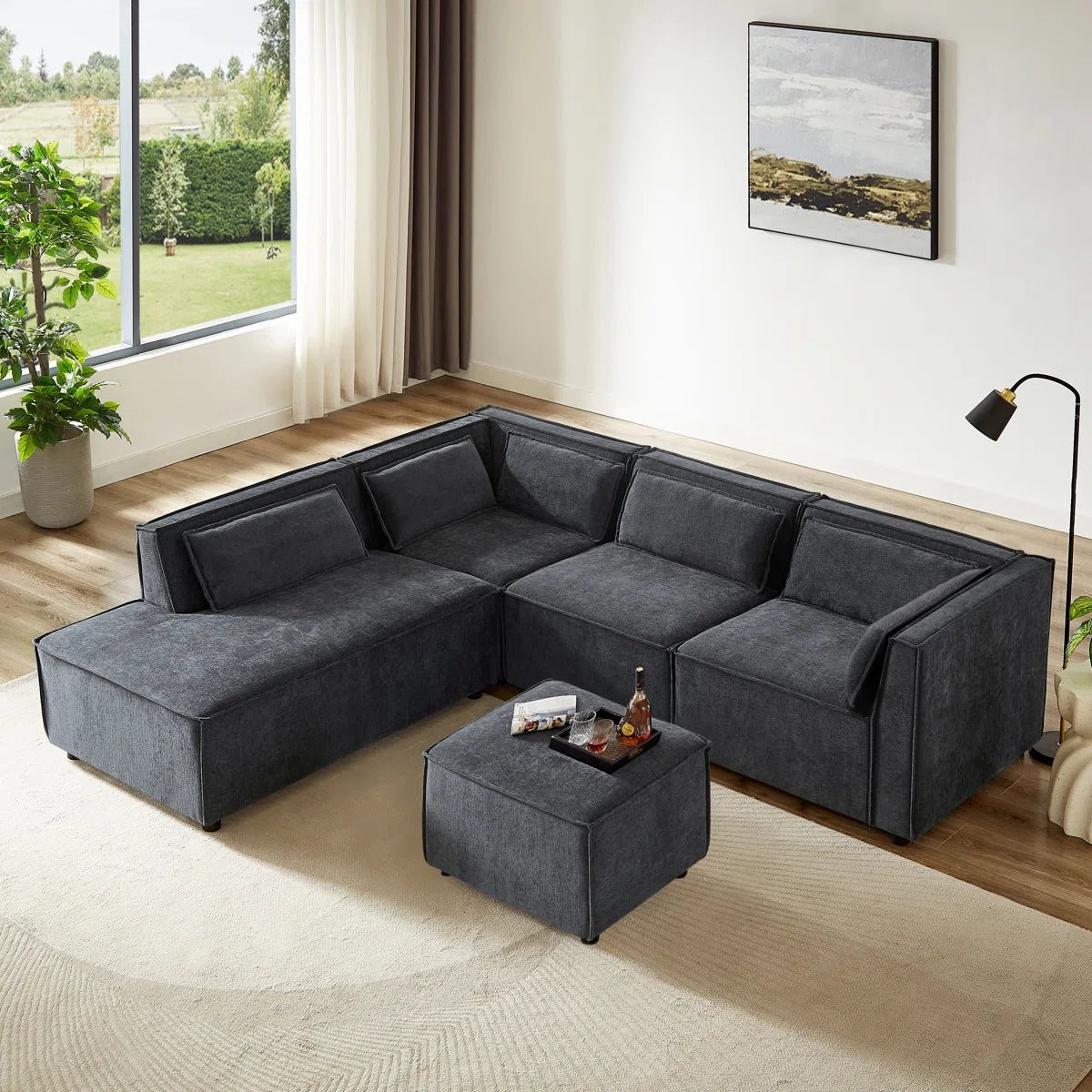 7 Seater Sofa Set: 100" W Linen Modular Combination Sofa Bed with Ottoman
