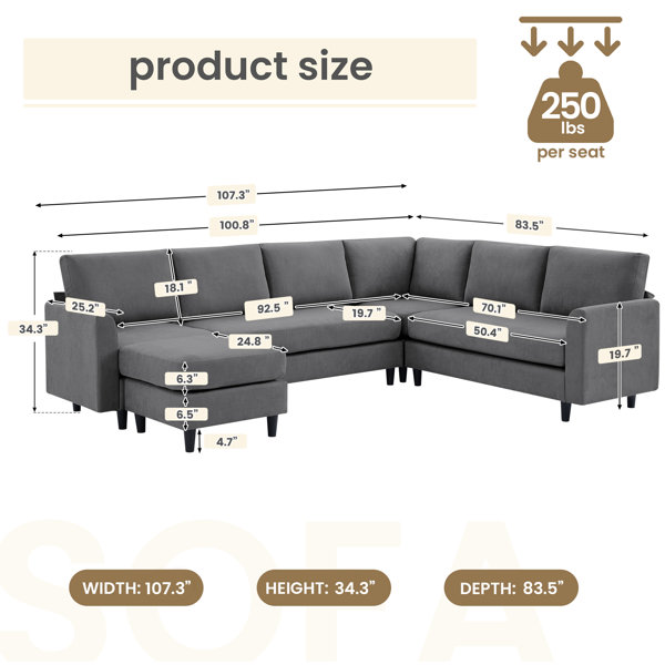 7 Seater Sofa Set: 107.3" Sectional Sofa with Leather